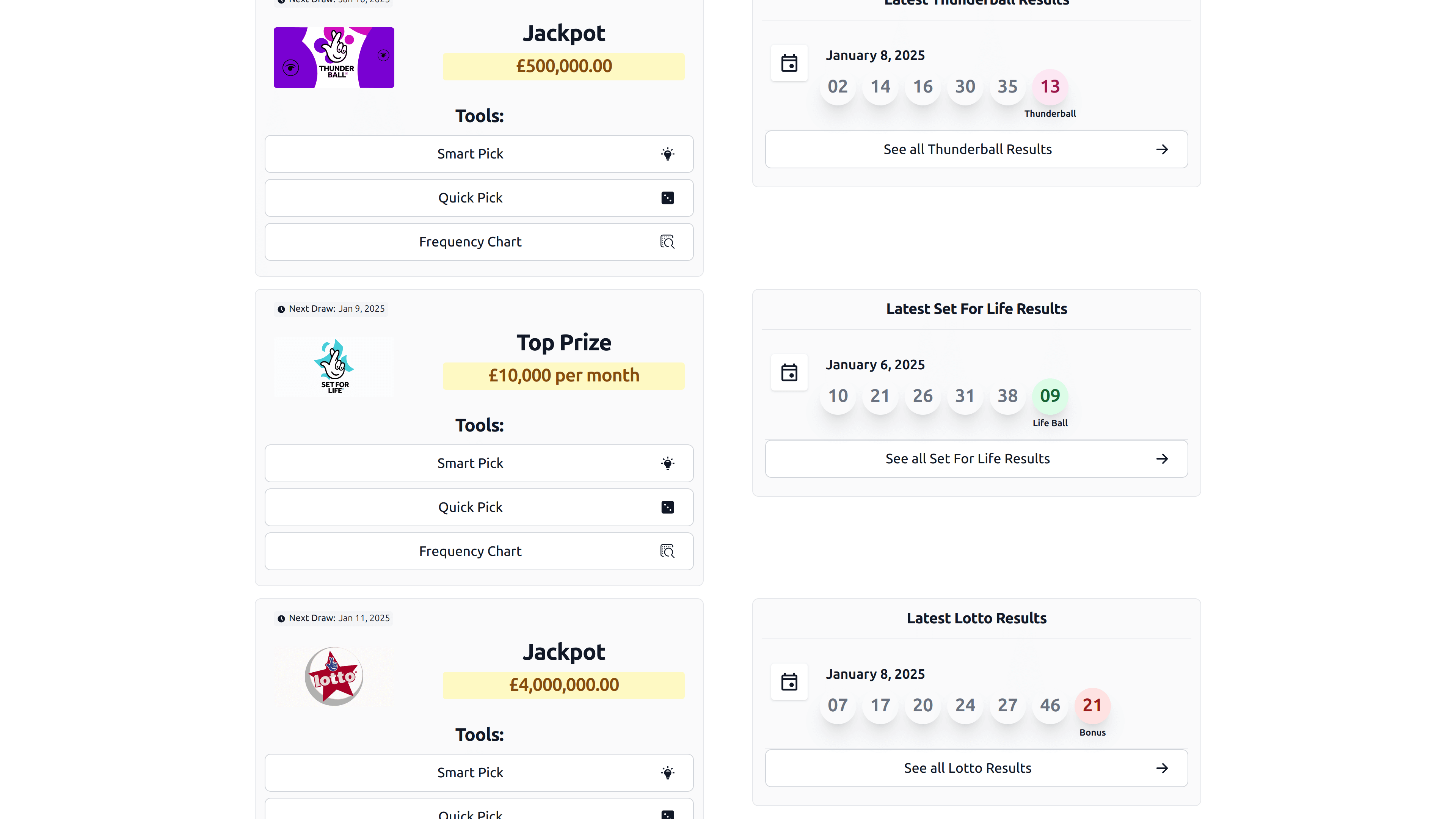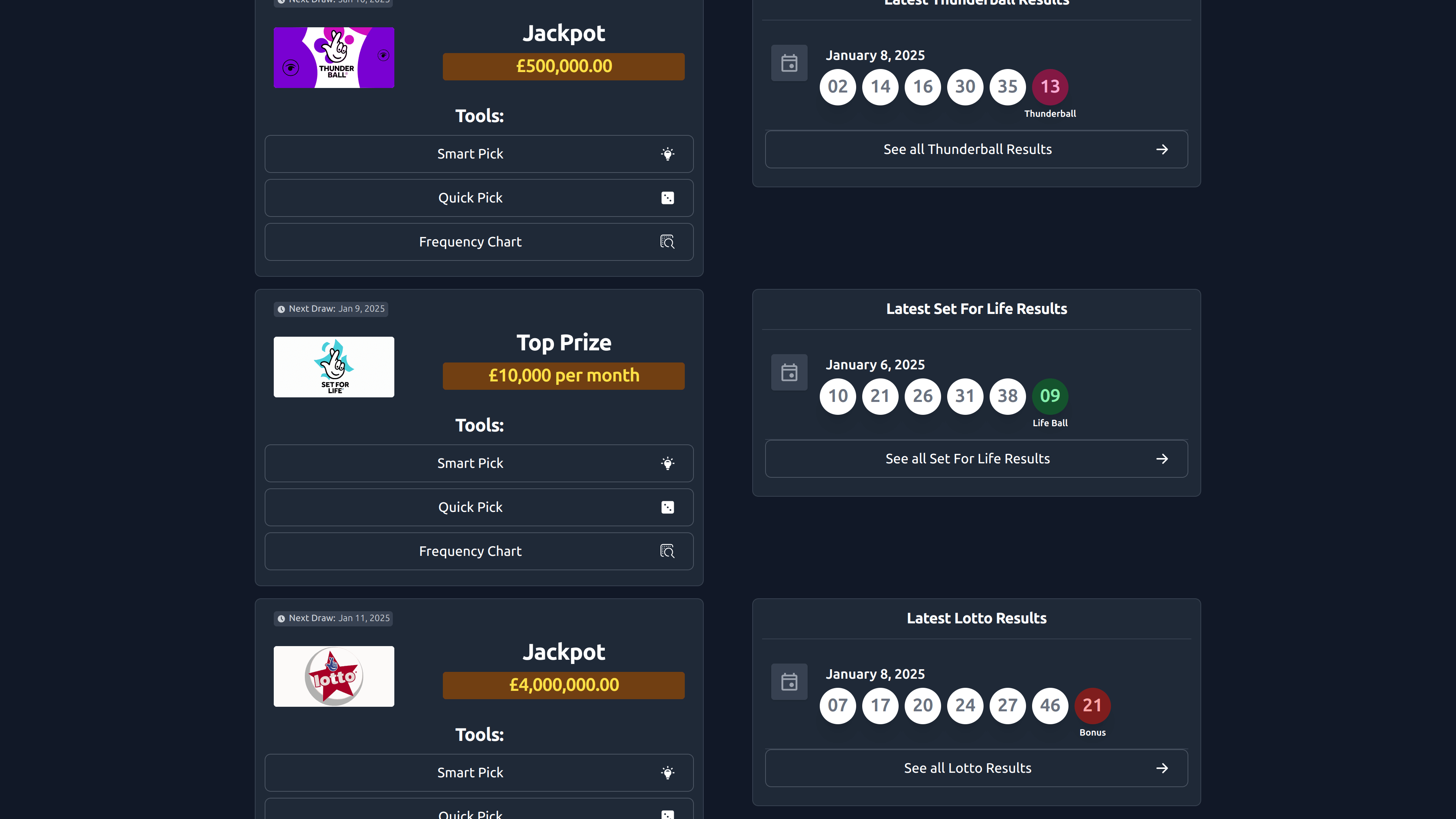 From Thunderball to EuroMillions and Hotpicks, we support the most popular UK and regional lottery games. Just choose the game you play, and our tools will adapt accordingly.